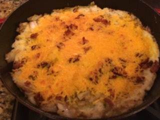 Add the mashed potatoes to the cabbage and stir to combine. Add the crumbled bacon and stir.