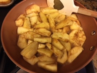 Add all of the apples at one time, making sure each piece gets coated with the butter.