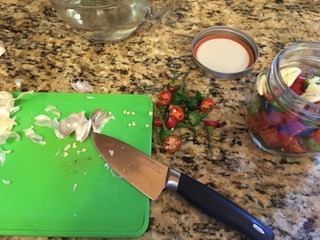 Cover the jalapeños with the liquid, add the smashed garlic, seal, refrigerate.