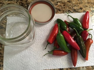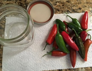 You can use virtually any spicy pepper but we prefer the flavor and heat of jalapeños.