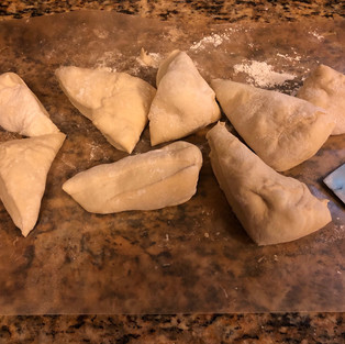 Roll each piece of dough into a long rope about 18 inches long. Shape into a pretzel and set on the parchment lined cookie sheet.